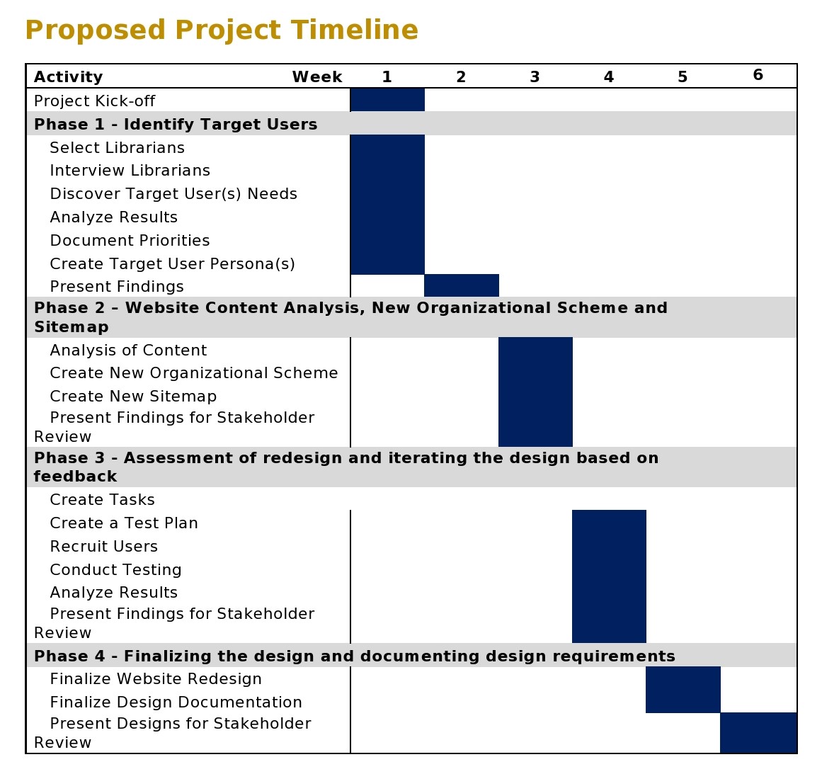 Phase 3. Upon completion of usability testing of the new wire frames the final Phase 4